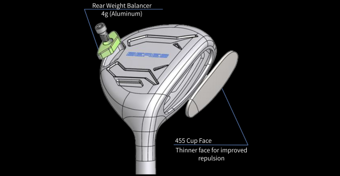 Center of gravity design for each club (internal weighting element varies depending on the club)