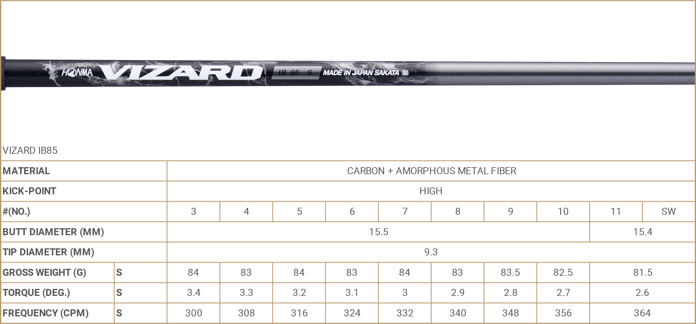 | VIZARD IB85 | S | D1・385 | D1・391 | D1・397 | D1・404 | D1・410 | D1・416 | D1・423 | D1・429 | D1・437 | D2・439 | |