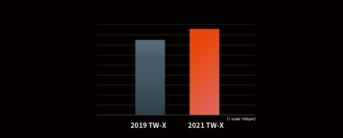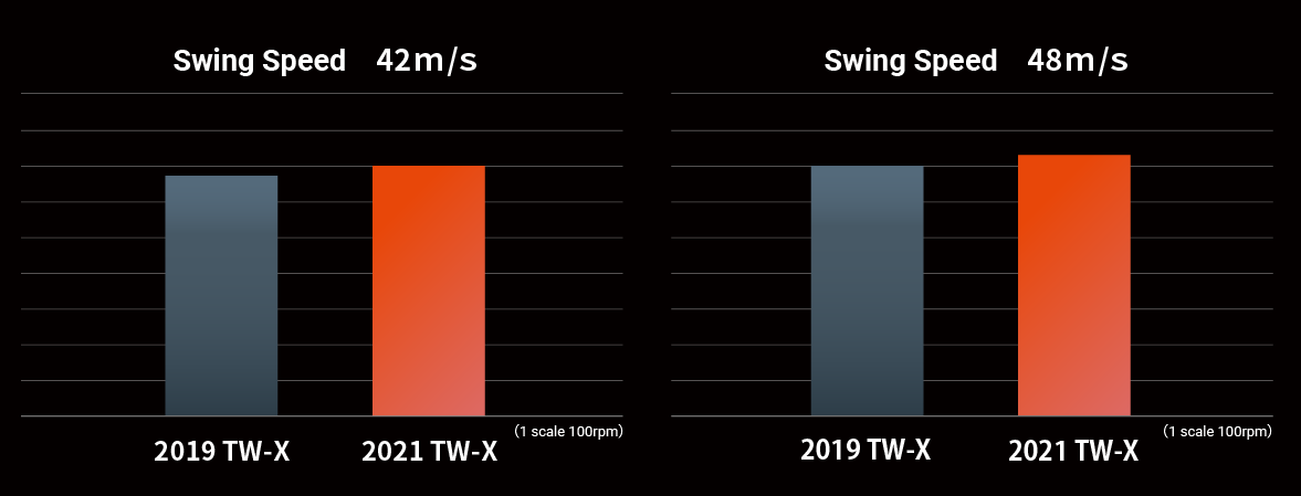 Compared to TW-X 2019, distance performance is improved at both 42 and 48m/s swing speeds. (1W)