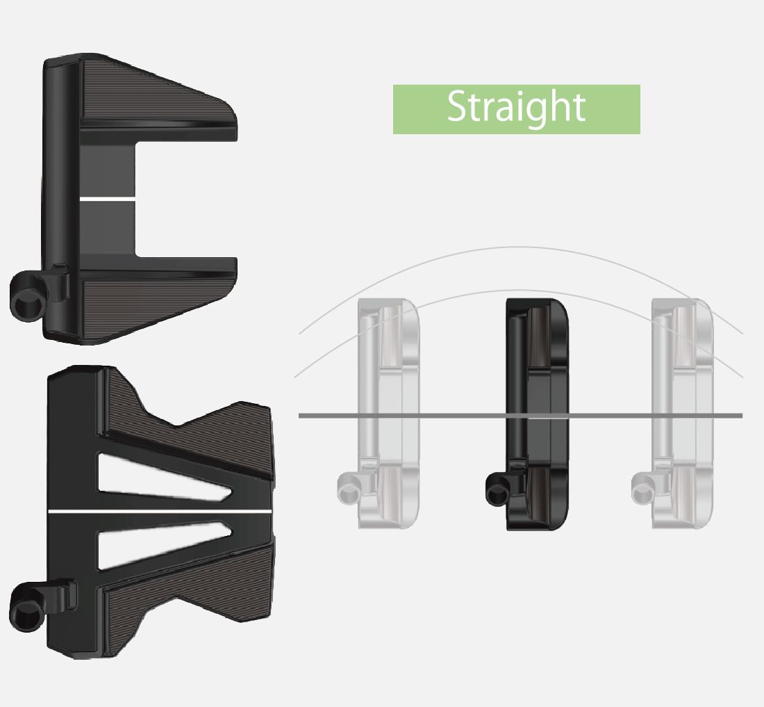 ツノ型・ネオマレット(SL-003 / SL-005)真っすぐ引いて真っすぐ打つストレートタイプに最適な形状。慣性モーメントが高くオートマチックに打てる。スクエアに構えやすく、方向性が出しやすい。