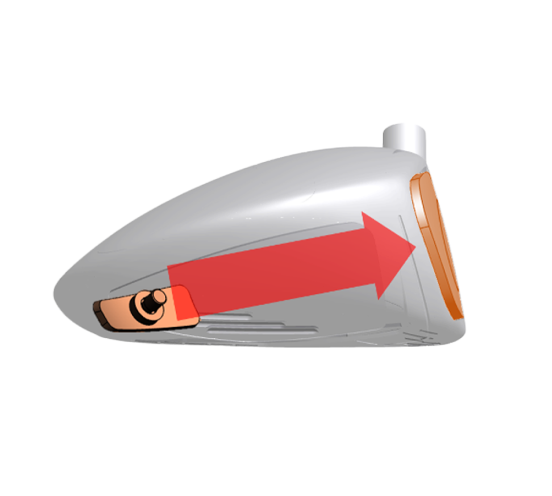 PBDB ウエイト(Push Back & Draw Bias Weight)ソールではなく、飛球線の延長に位置するバックサイドにウエイトを配置。インパクトのエネルギーがロスなく反発力に変換され、ヘッド後方から押し返し、初速をアップさせる。また、ヒール寄りの配置はつかまり性能をアップさせる。