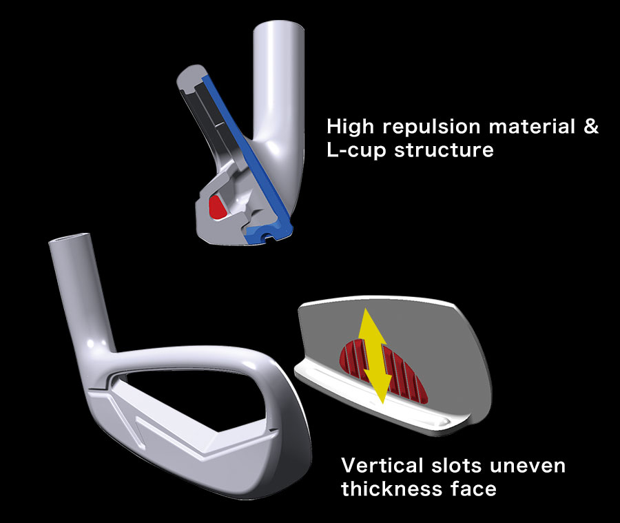HIGH REPULSION L-CUP FACE(#5~#7)The increased repulsion coupled with an expanded repulsion area on the face boost ball speed, especially on higher and lower-face strikes