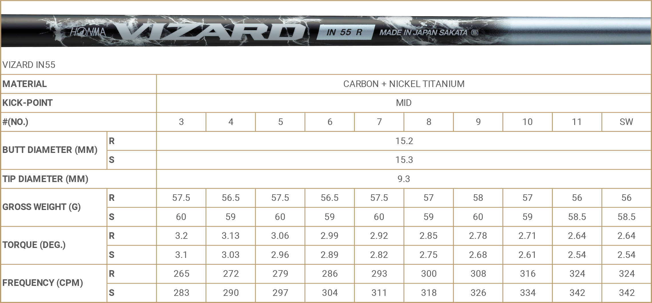 | VIZARD IN55 | S | D1・362 | D1・368 | D1・374 | D1・380 | D1・387 | D1・393 | D1・400 | D1・406 | D1・416 | D2・418 | |